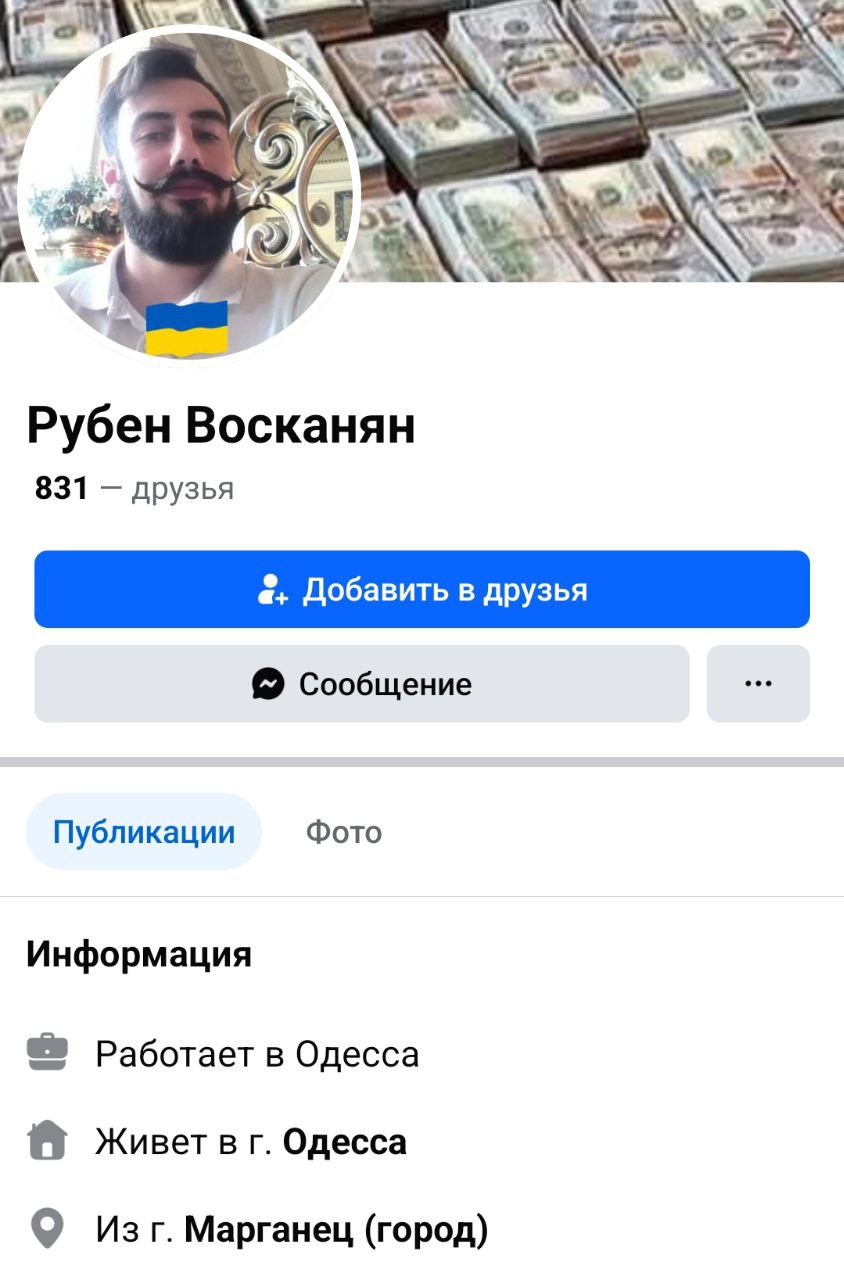Анкета у Фейсбуці підтверджує, що затриманий родом із міста Марганець Дніпропетровської області. Як постійне місце проживання вказана Одеса.