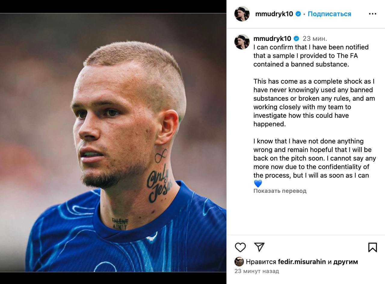 Мудрик підтвердив інформацію про позитивний тест і заявив, що для нього це стало "повним шоком". Він запевнив, що "свідомо" заборонених речовин не вживав.