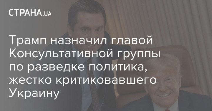 Обраний президент США Дональд Трамп призначив головою Консультативної групи з розвідки Девіна Нуньєса, який у 2019 році критикував "шкідників з України".
