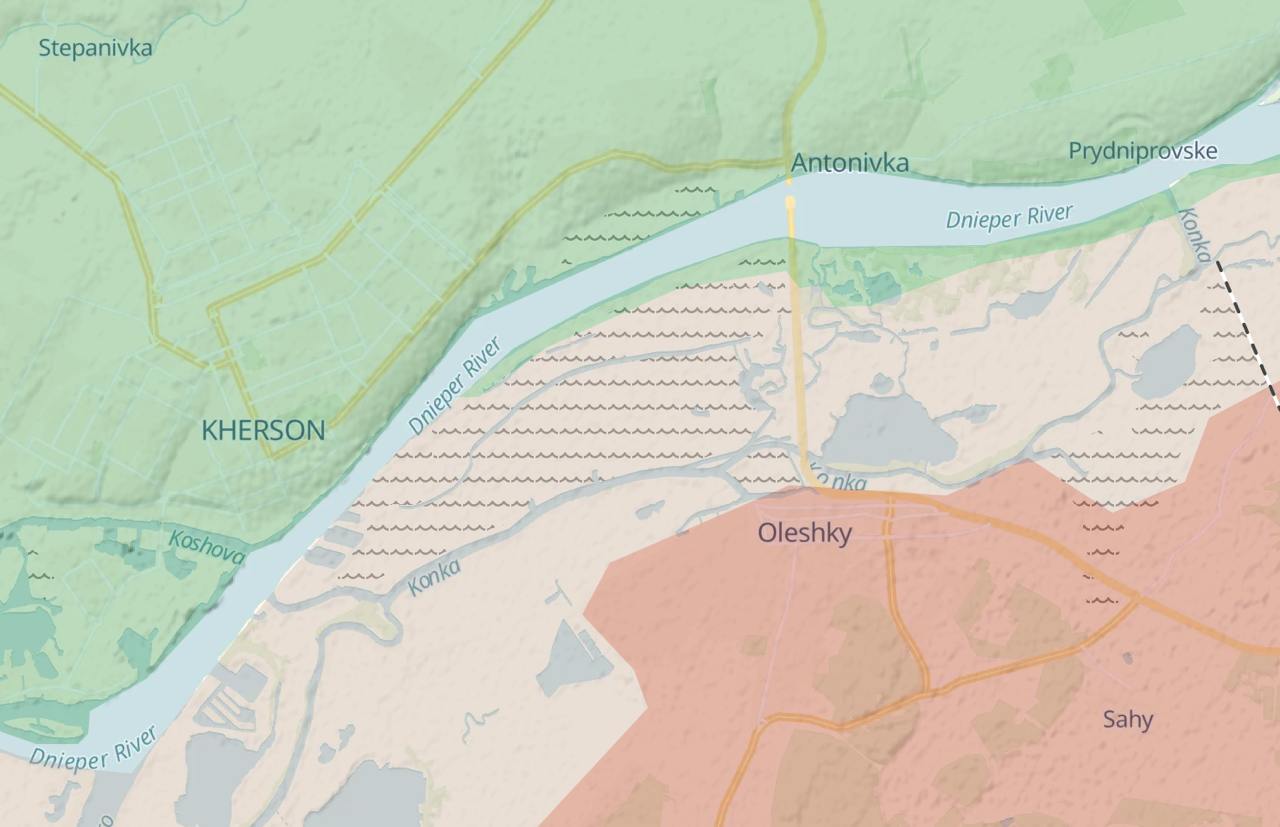 "Росіяни закріпилися одразу за мостом, на дачах", - розповів Зейналов. Район дач знаходиться на лівому березі Дніпра і, за даними військового ресурсу Deep State, контролюється ЗСУ.