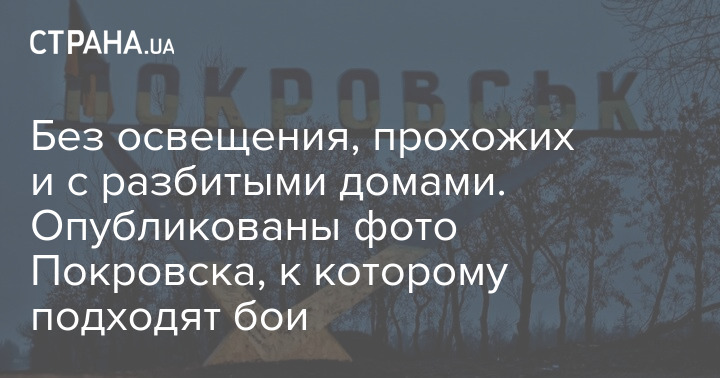 Прифронтової Покровськ сьогодні – без людей, освітлення вулиць, із зруйнованими будинками.