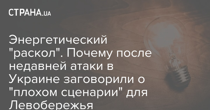 Примітно, що буквально відразу ж після масованої атаки з енергетики 25 грудня відразу кілька експертів заявили про те, що країна в енергетичному плані вже фактично за крок від розколу на "правобережжі" та "лівобережжі", але не географічно - Дніпром, а "енергетично" ". Оскільки більшість потужностей, що генерують, зосереджена на "правобережжі", "лівобережжя" ризикує "зануритися в темряву", а відключати електроенергію там будуть набагато жорсткіше, ніж на "правобережжі".