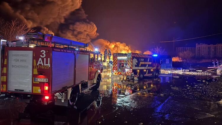 "Внаслідок бойової роботи та падіння уламків виникла пожежа на даху п'ятиповерхового житлового будинку та сухої трави на території промислового підприємства", - написав Кім.