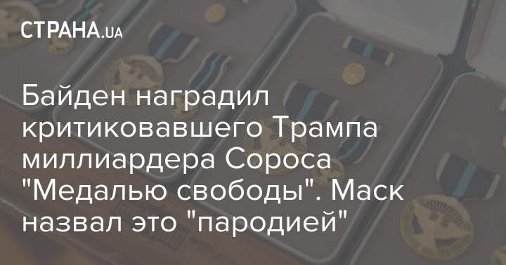 Байден нагородив мільярдера Сороса, який критикував Трампа, "Медаллю свободи". Маск назвав це "пародією"
