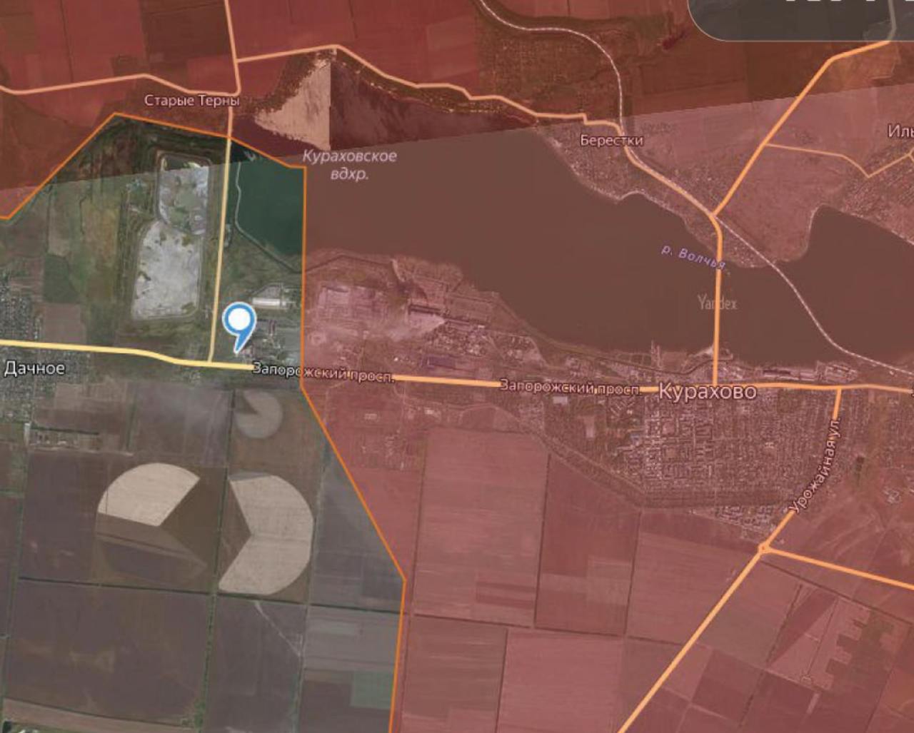 Російські пабліки заявляють, що їхні війська встановили прапор на західній околиці Курахового. Вони публікують кадри з геоприв'язкою, стверджуючи, що це місце на південь від Старих Тернів.