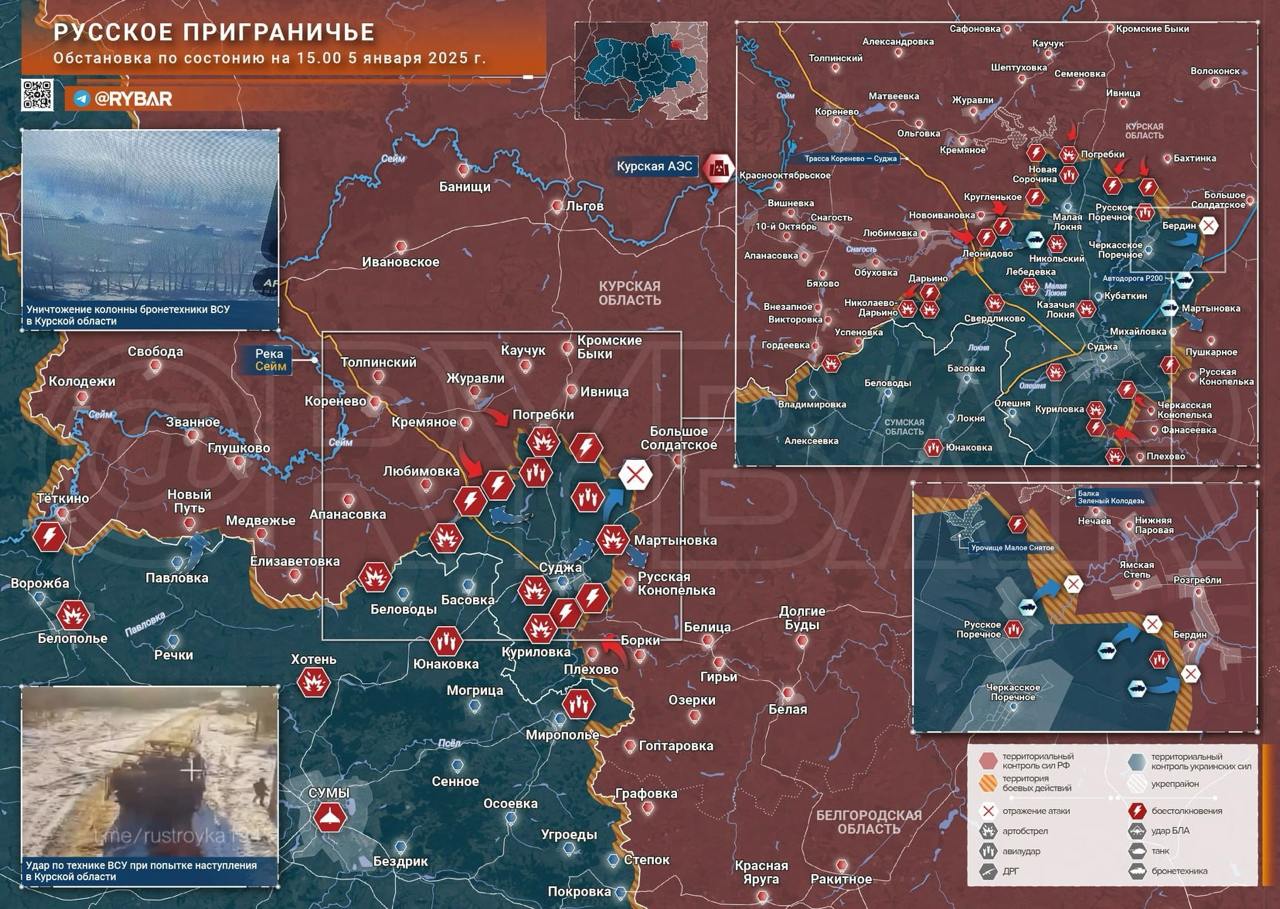 Ключовою точкою на цьому напрямку, як і зранку, залишається хутір Бердін, який ЗСУ, за даними російських джерел, продовжують атакувати. російські телеграм-канали написали, що подальше просування ЗСУ зупинено.