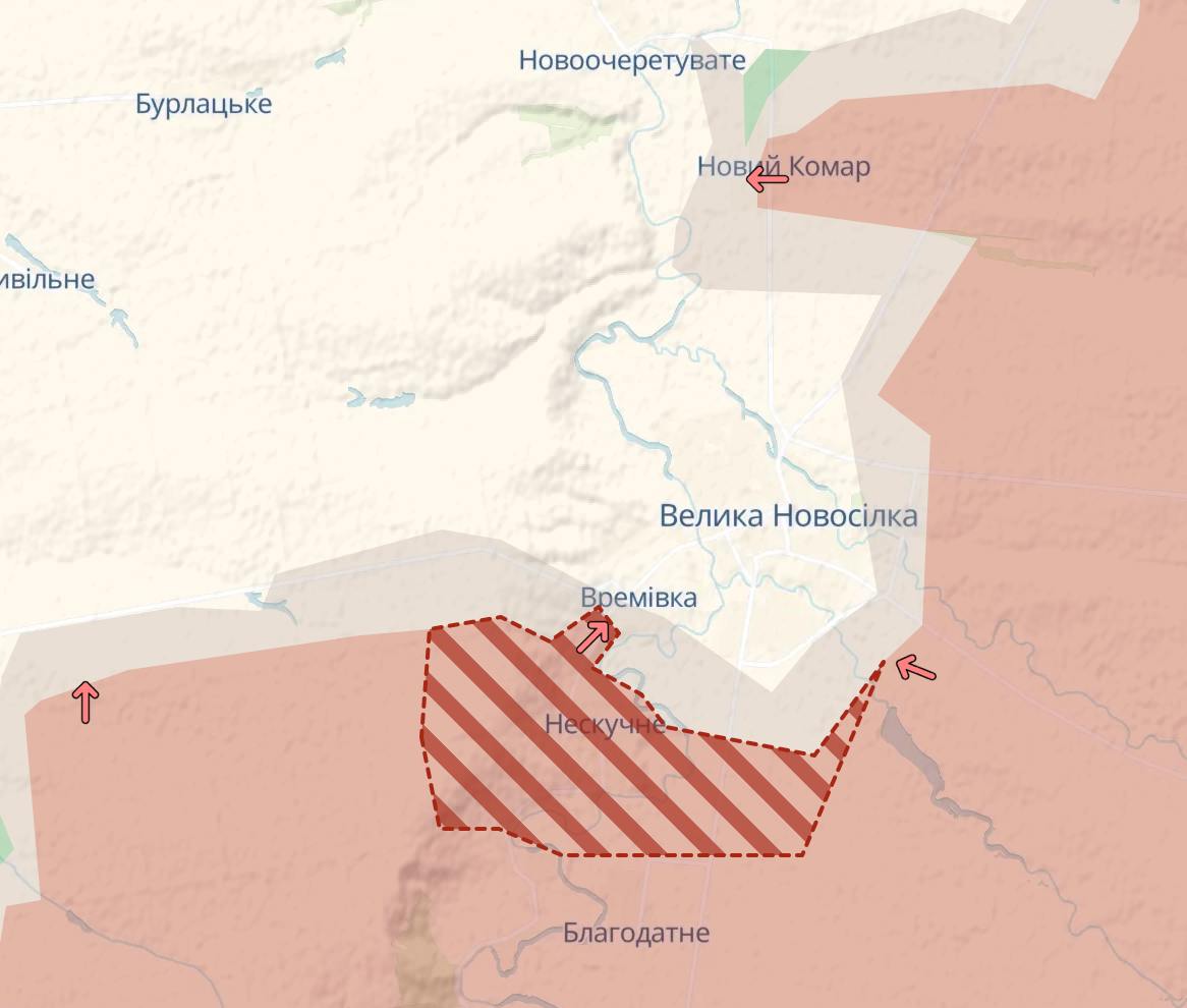 Російські війська захопили Нескучне під Великою Новосілкою в Донецькій області, просунулися на південний захід від Курахового та Покровська (в районі Котліно).