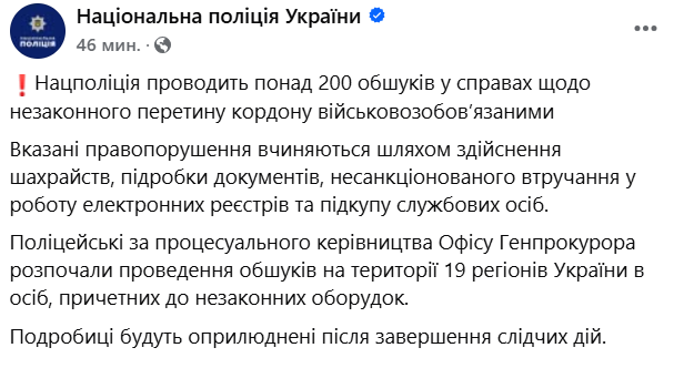 Нацполіція проводить понад 200 обшуків через схеми незаконного виїзду чоловіків за кордон