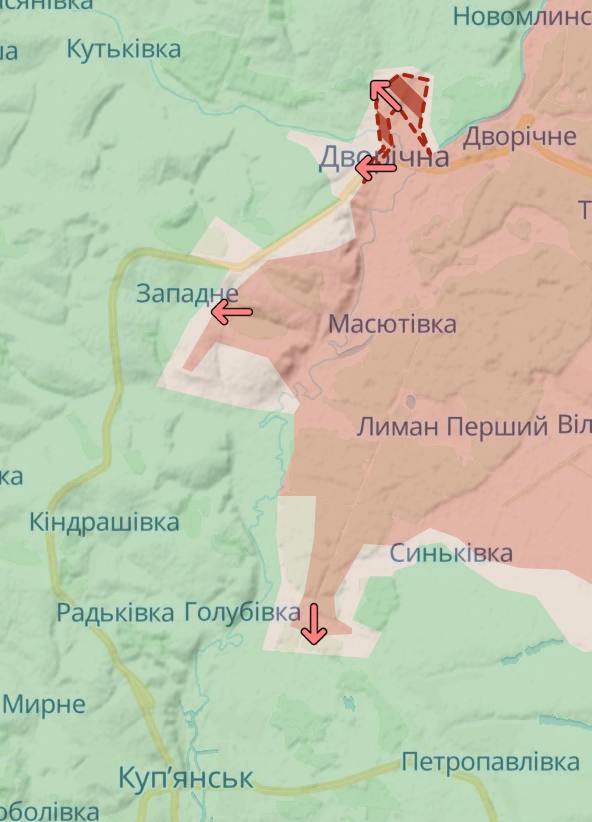 Армія РФ розширює свої плацдарми на правому березі річки Жеребець в Іванівці Донецької області та на правому березі річки Оскол у Дворічній Харківській області.