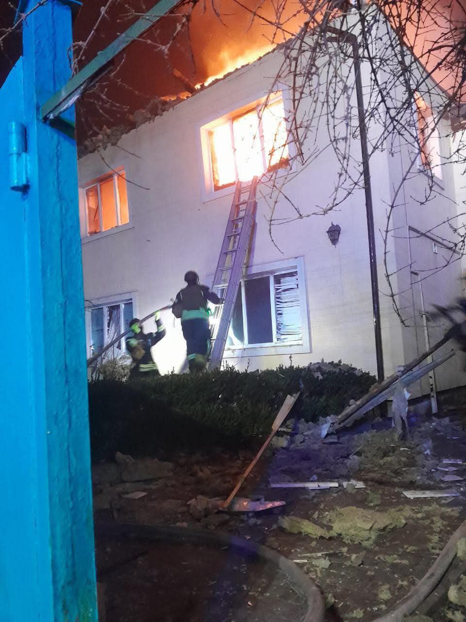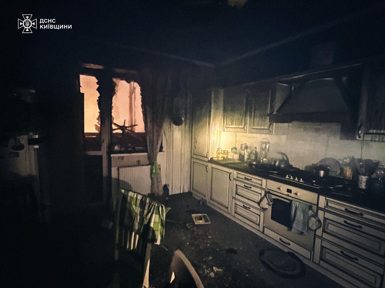 У Фастівському районі внаслідок попадання уламків БПЛА до 10-поверхового житлового будинку. Відбулася пожежа та руйнація на 6-7 поверхах. Евакуйовано 150 мешканців. Загинув чоловік 1988 р.н.