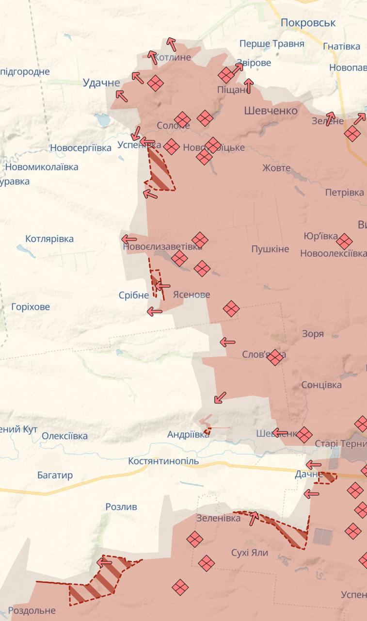 Нагадаємо, що фронт наближається до Дніпропетровської області з боку Великої Новосілки та Вдалого, що на південь від Покровська.