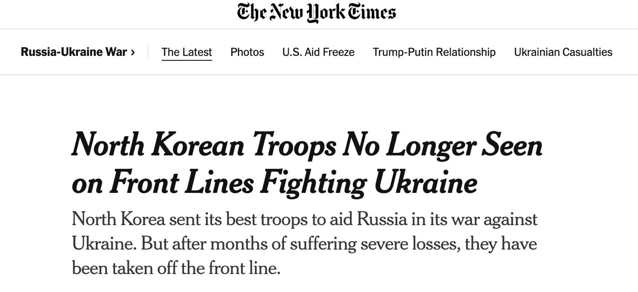 Північнокорейських військових відкликали з лінії фронту Курської області РФ через великі втрати. Про це повідомляє The New York Times із посиланням на українських та американських офіційних осіб.