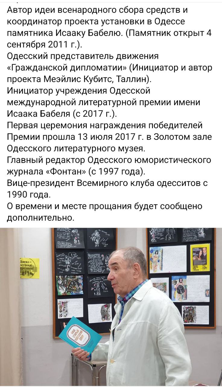 Причину смерті легендарного одесита не повідомляється. Про місце прощання з ним інформація буде згодом.