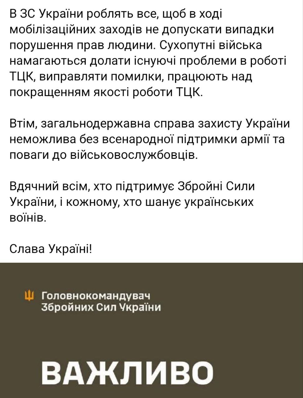 Він розкритикував ці напади та заявив, що "у ЗСУ роблять все, щоб при мобілізації не допускати порушень прав людини".