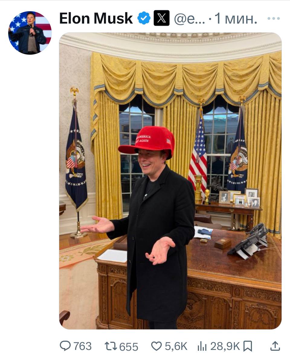 Бізнесмен Ілон Маск та журналіст Такер Карлсон побували в Овальному кабінеті Білого дому.