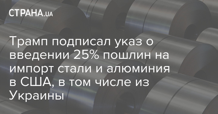 Президент США Дональд Трамп підписав указ про введення мит у розмірі 25% на ввезення сталі та алюмінію з інших країн.