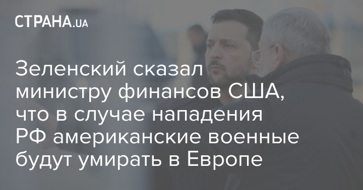 Володимир Зеленський описав міністру фінансів США Скотту Бессанту похмуру перспективу: якщо Москва вторгнеться до Європи, там помиратимуть американські військові.