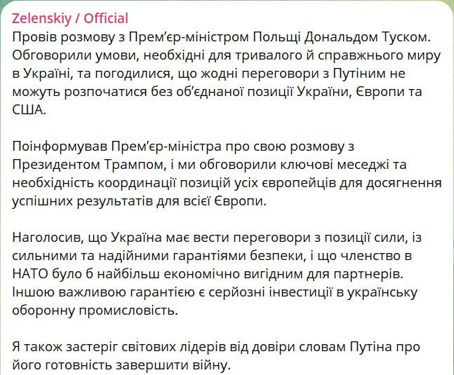 За словами українського президента, Туск із ним погодився.