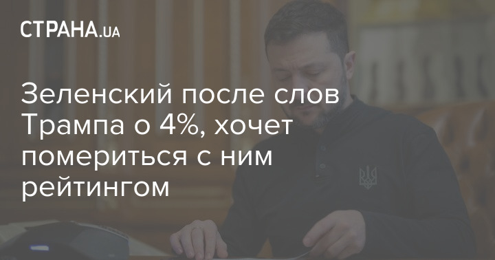 Президент України Володимир Зеленський має намір дізнатися про рейтинги глави Білого дому Дональда Трампа, президента Туреччини Реджепа Таїпа Ердогана, прем'єр-міністра Польщі Дональда Туска і прем'єр-міністра Великої Британії Кіра Стармера. Така ідея прийшла йому після того, як Трамп заявив, що рейтинг Зеленського впав до 4%.