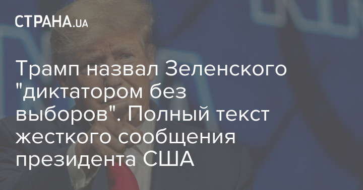 Трамп назвав Зеленського "диктатором без виборів". Повний текст жорсткого повідомлення президента США