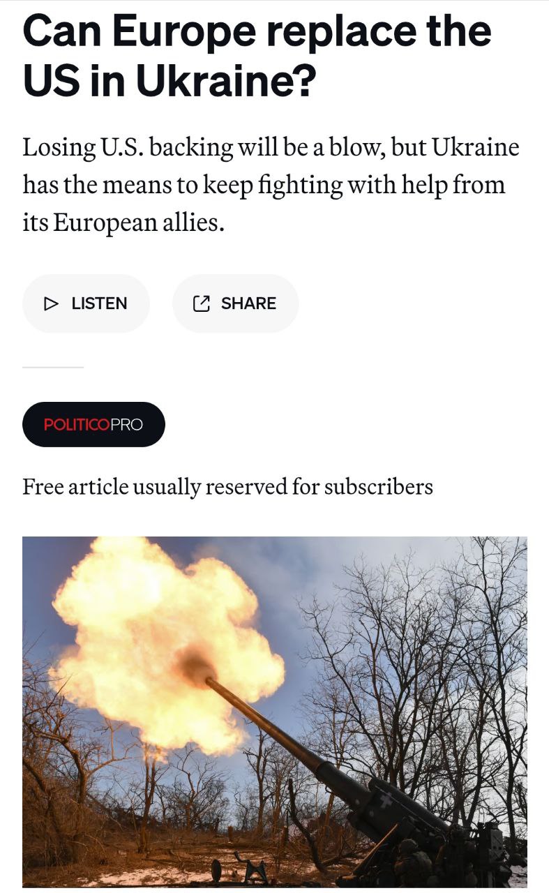 Видання також наводить дані Кільського інституту, за якими американці несли більшу частину військових витрат України. Так, з лютого 2022 року до кінця 2024 року США витратили 64 мільярди євро на військову підтримку України, тоді як Європа, включаючи Велику Британію та Норвегію, виділила майже 62 млрд євро. Тобто втрата американської допомоги дуже вдарить по ЗСУ, якщо війна продовжиться.