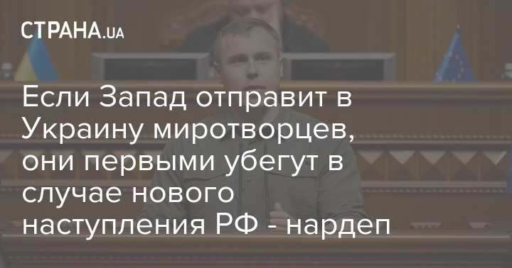 "Дивлячись які умови будуть створені. Якщо буде перемир'я, світ, якщо нам дадуть серйозні гарантії безпеки, тоді можна буде. І потім: де будуть ці миротворці? Вони будуть серед нас чи позаду нас? Перебувати між Росією та Україною? депутат.