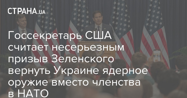 Держсекретар США Марко Рубіо назвав "несерйозним" заклик президента України Володимира Зеленського повернути Києву ядерну зброю замість членства у НАТО.
