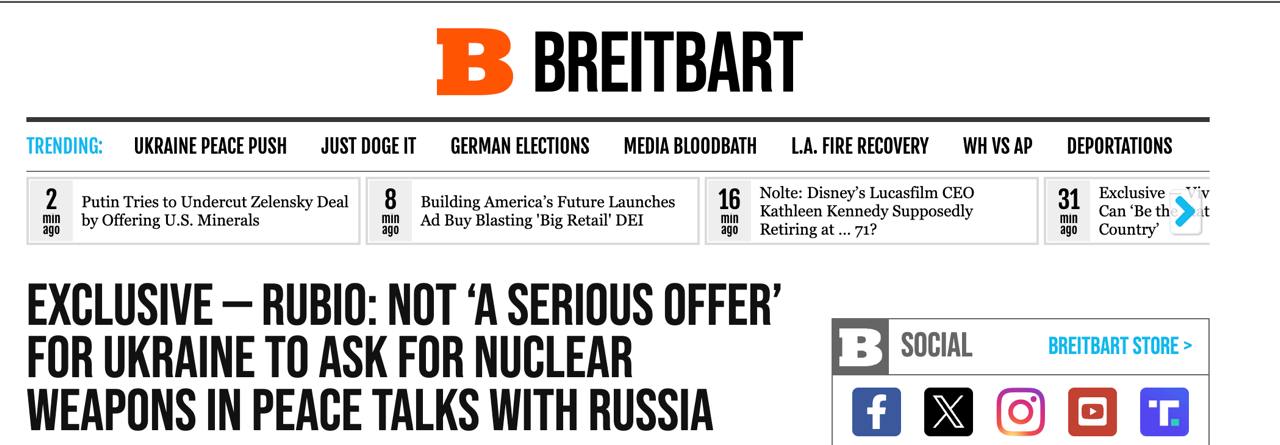 Про це Рубіо сказав в інтерв'ю порталу Breitbart News.
