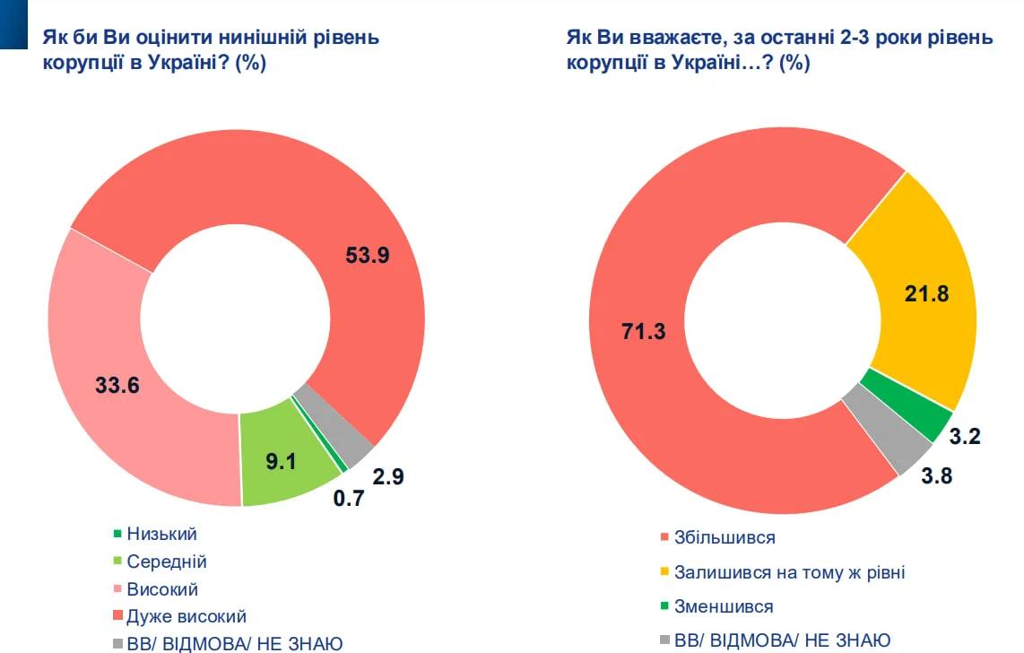 71,3% населення вважають, що за час війни рівень корупції лише зріс. 57,4% вважають відповідальною у цьому владу.