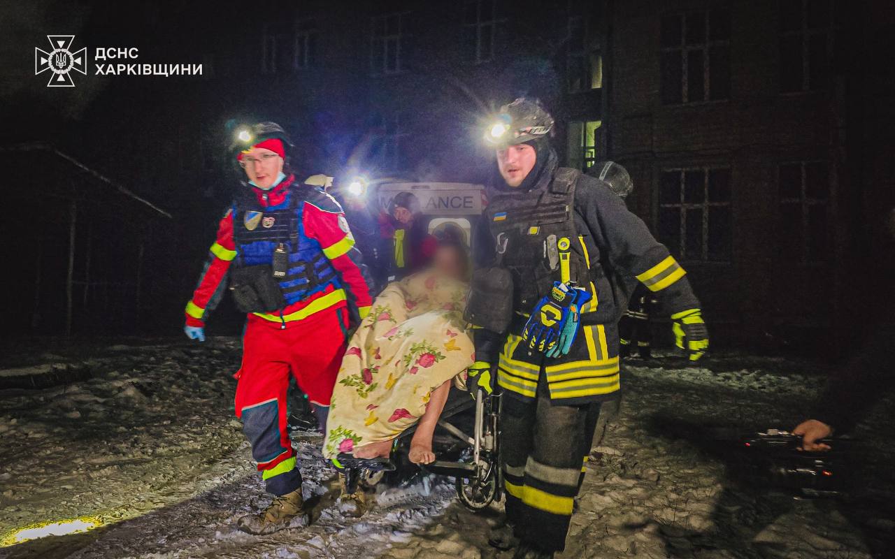 Наслідки нічного остелу Харкова. Фото: ДСНС