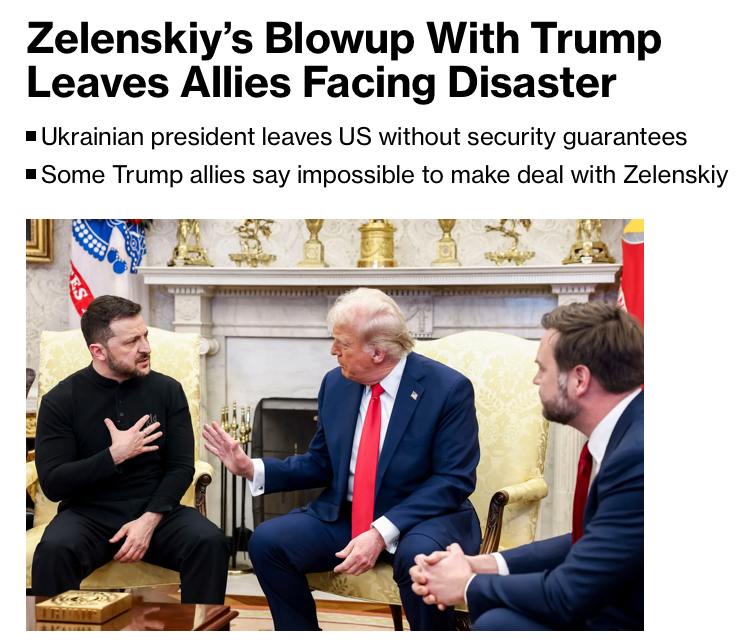 "Цей скандал призвів до відкритого розриву України з її головним союзником і постачальником озброєнь... Європейські союзники Києва, які тижнями намагалися відмовити Трампа від поспішного укладання угоди на умовах Володимира Путіна, тепер лютують", - повідомляє агентство.