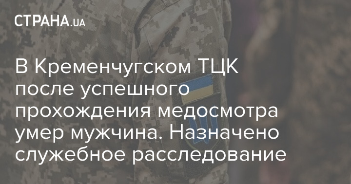 У Кременчуцькому районному територіальному центрі комплектування помер мобілізований невдовзі після проходження військово-лікарської комісії, яка визнала його придатним до військової служби.