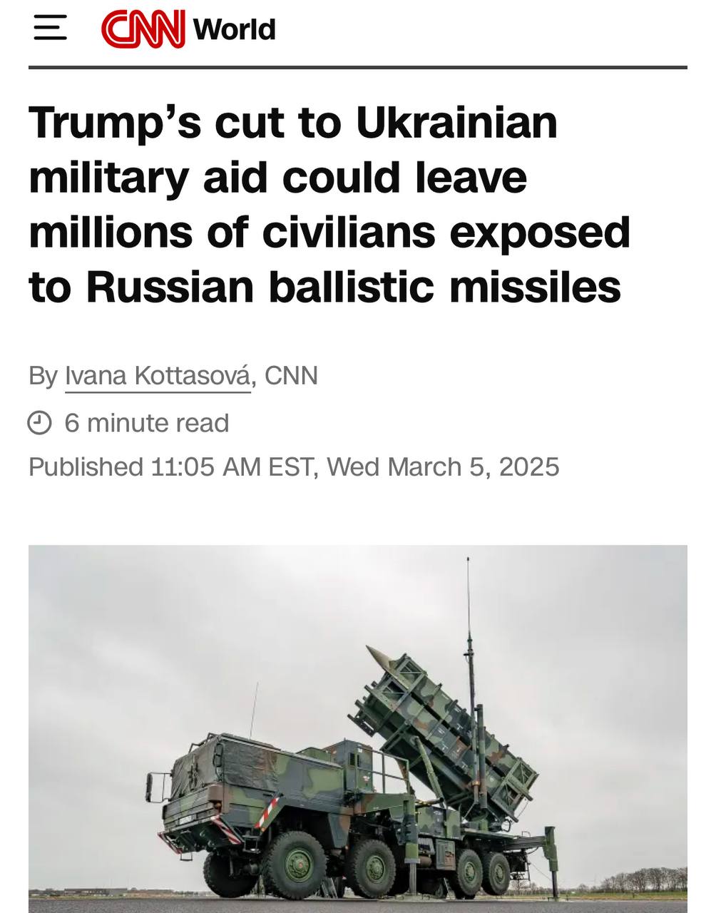 Телеканал зазначає, що потенційна втрата систем ППО Patriot американського виробництва буде найбільшою проблемою для України після зупинення військових постачань США.