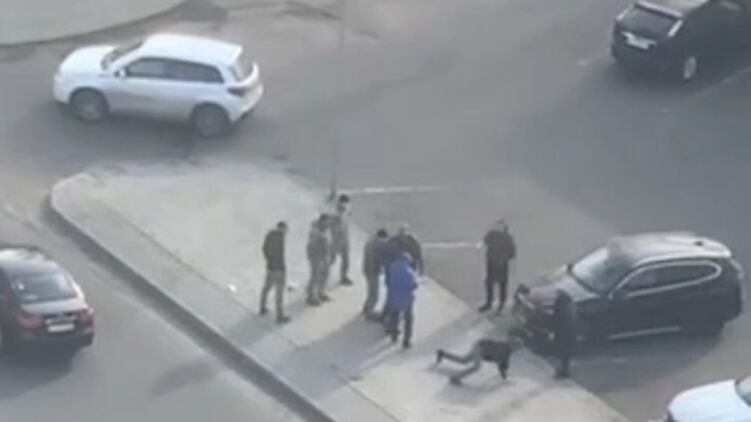 Стверджується, що чоловік у цивільному одязі, що лежить в оточенні кількох людей у формі камуфляжу, потрапив під машину, тікаючи від наряду ТЦК.