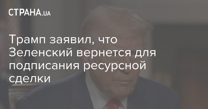Президент США Дональд Трамп заявив, що український президент Володимир Зеленський повернеться, щоби підписати ресурсну угоду.