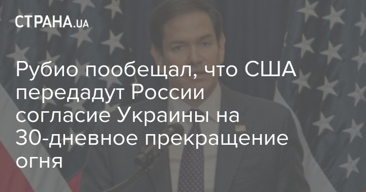 За його словами, США передадуть Росії згоду України на припинення вогню на 30 днів.
