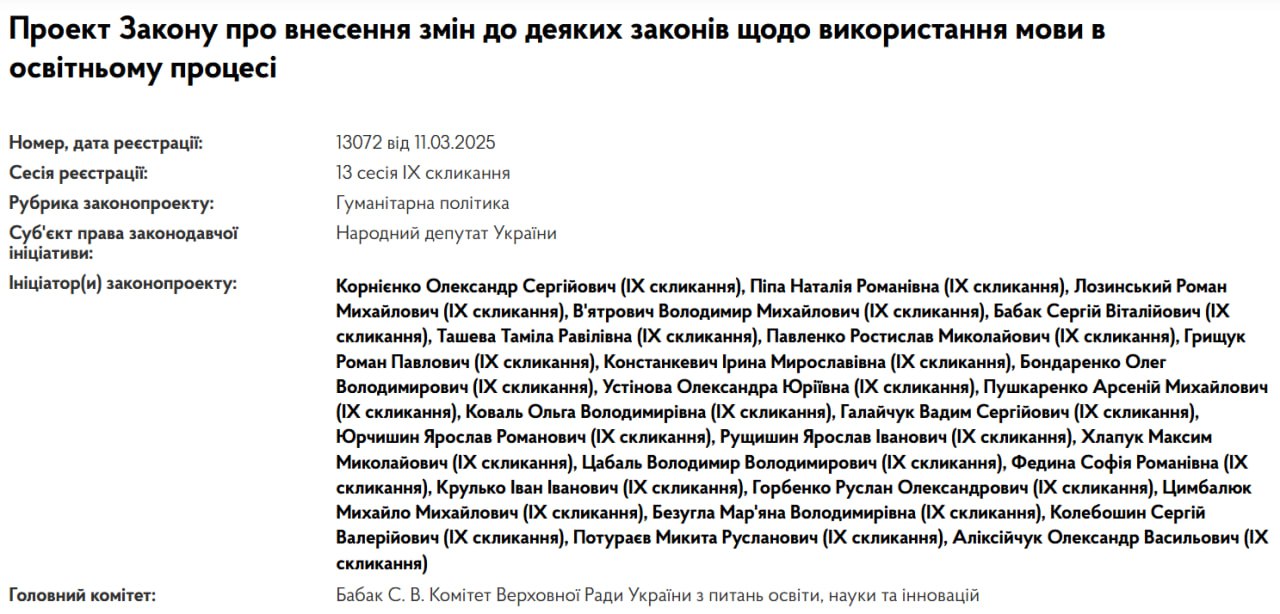 Раніше ми публікували подробиці внесеного Наталією Піпою законопроекту №12086, який зобов'язує школярів та вчителів спілкуватися під час змін українською.