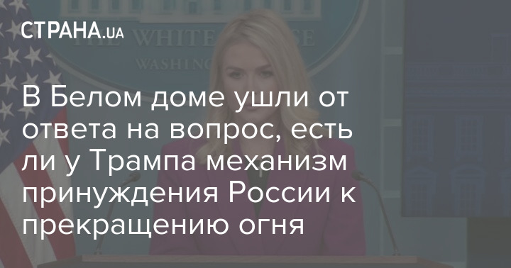 Представник Білого дому Керолайн Лівітт не відповіла на запитання про те, чи має адміністрація президента США Дональда Трампа якийсь механізм примусу на випадок, якщо Росія порушить запропоноване Штатами "припинення вогню".