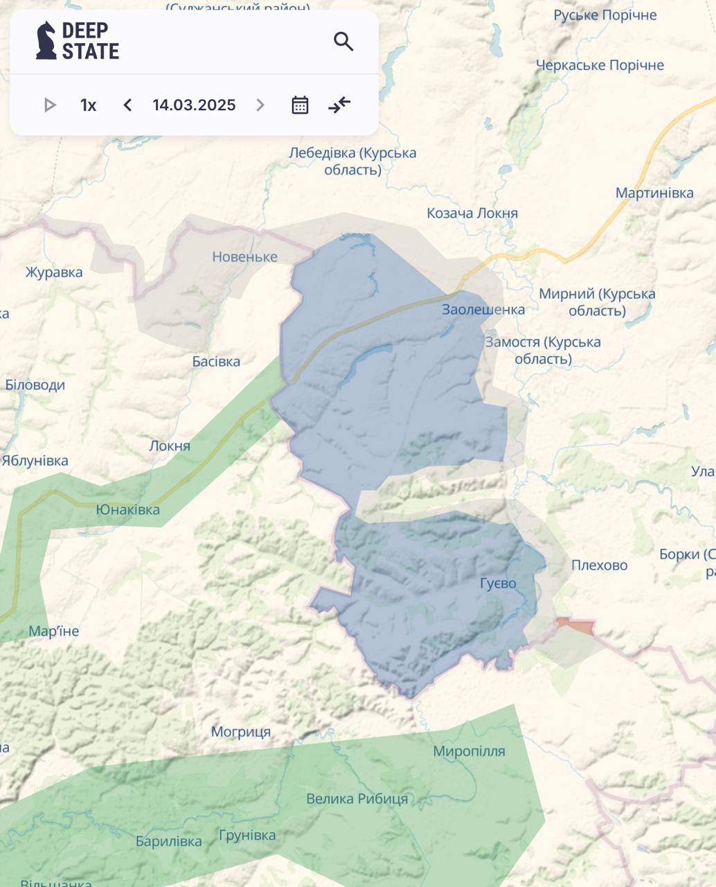 У Курській області збереглося два невеликі українські плацдарми - в районі Гоголівки на захід від Суджі та в районі Гуєво на південь від Суджі. Жоден із них в оточенні не перебуває. Хоча комунікації плацдарму в районі Гоголівки фактично перебувають під вогневим контролем росіян. Але, повторимося, повного оточення там нема.