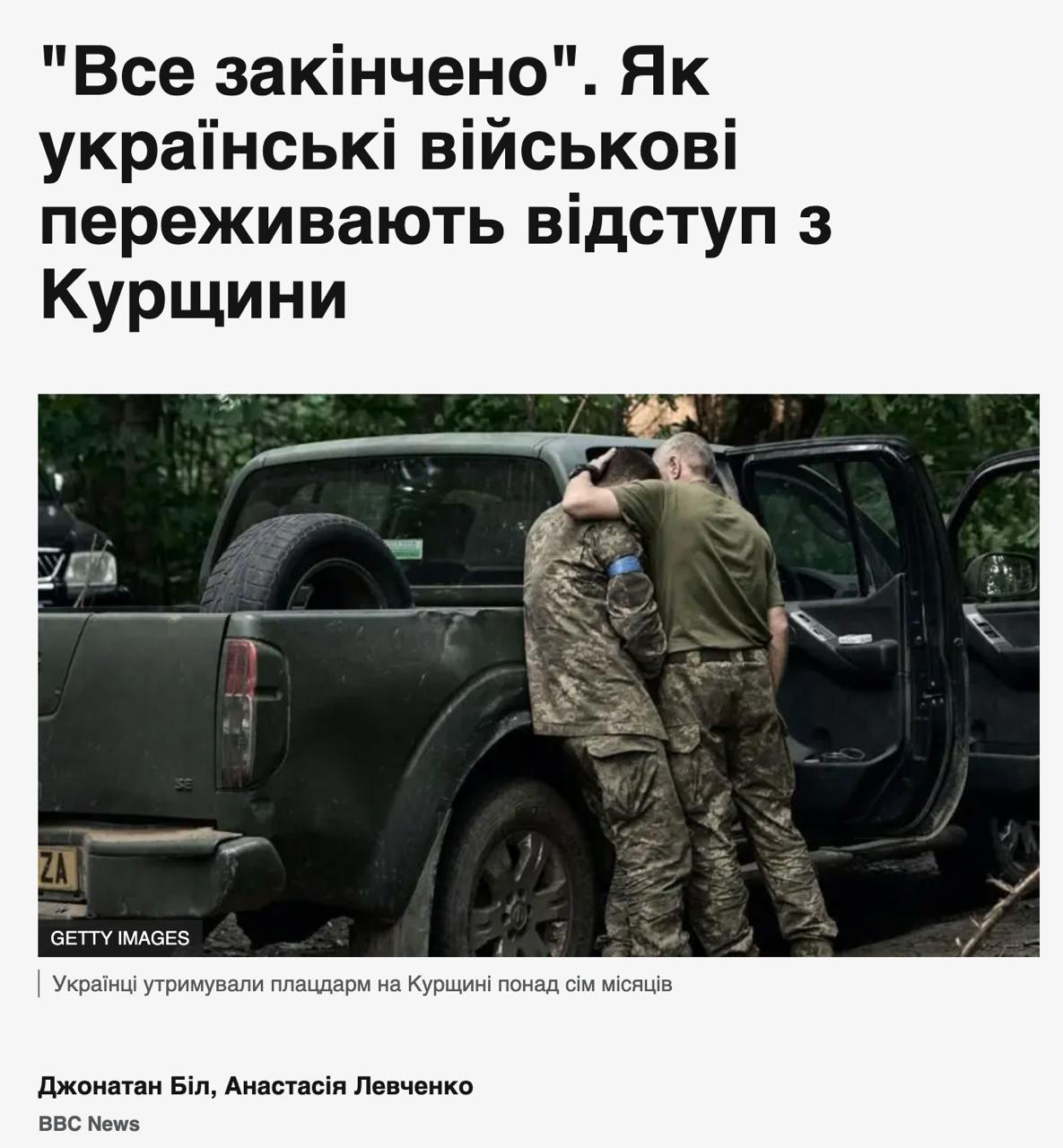 Раніше народний депутат Мар'яна Безугла заявляла, що відступ ЗСУ з Курської області не був запланований і підрозділи виходять, хто "як може", без наказу.