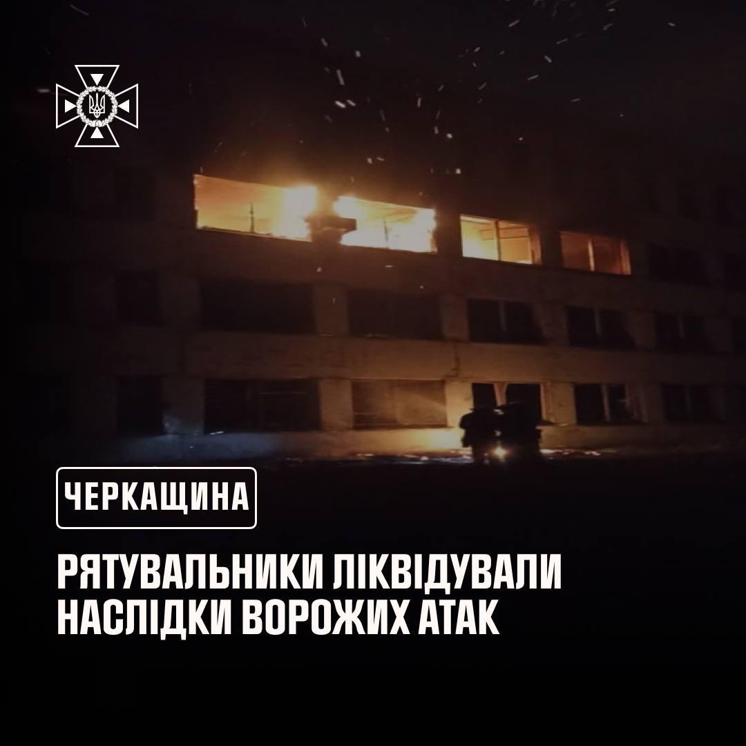 Через атаку БПЛА у Дніпровському районі сталися пожежі на двох підприємствах. Рятувальники їх уже загасили. Ніхто не постраждав.