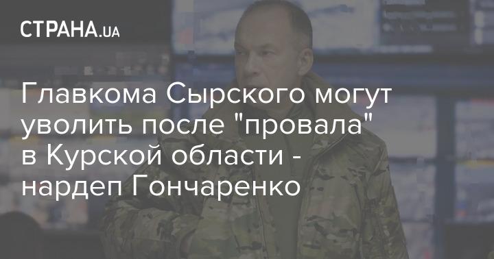 Головнокомандувача ЗСУ Олександра Сирського можуть звільнити після "провалу" у Курській області РФ. Про це пише народний депутат Олексій Гончаренко.