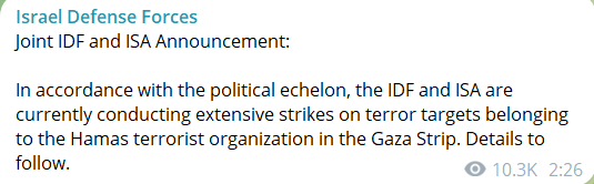 Ізраїль уночі відновив масовані авіаудари по сектору Газа. Його армія повідомила про удари по об'єктах ХАМАСу.