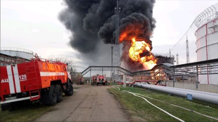 Пожежа на нафтобазі на Кубані після атаки дрону. Фото: kub-inform.ru