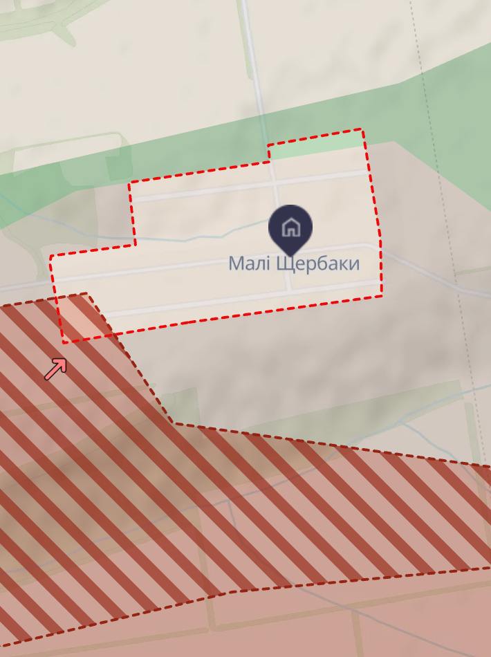 За даними українського військового паблику, РФ за останні дні просунулась між Степовим та Малими Щербаками і продовжує активно атакувати у спробі захопити їх.