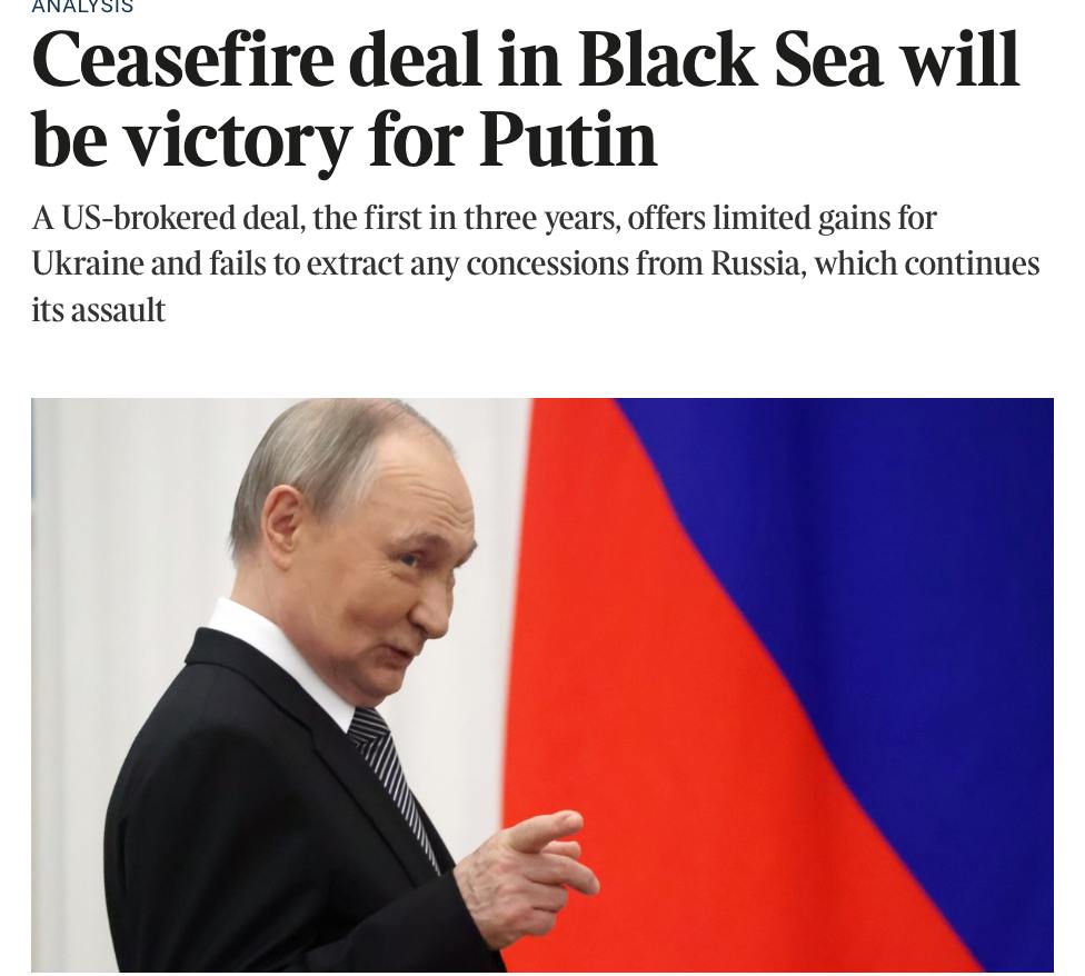Угода про припинення вогню у Чорному морі стане "перемогою Володимира Путіна".