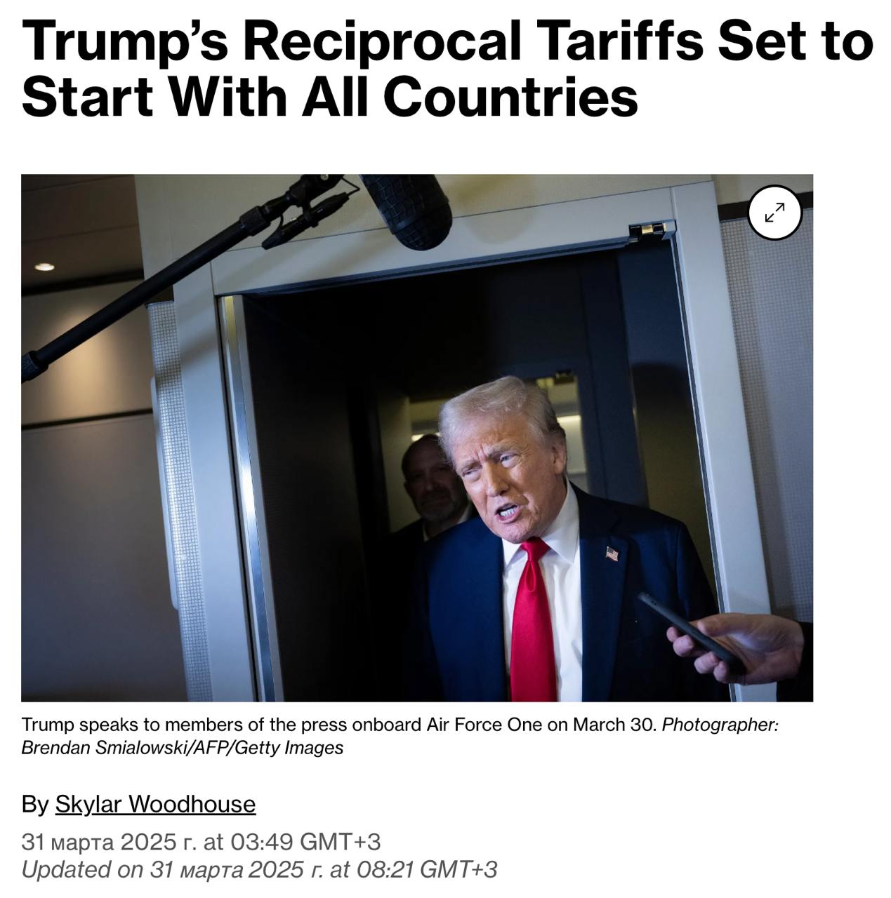 Агентство Bloomberg пише, що в Білому домі поки не уточнювали, які тарифи будуть введені, як їх розраховуватимуть і як мають діяти країни, щоб їх послабити. Однак у виданні Politico впевнені, що американське мито на імпорт із Євросоюзу може досягти 20-25%.