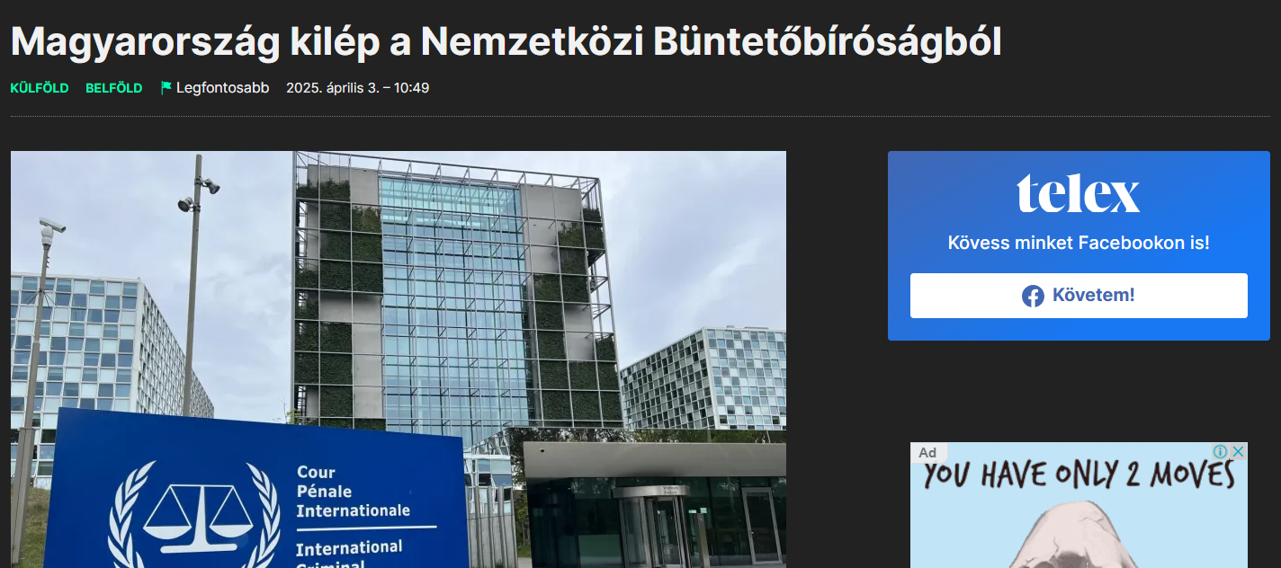 Угорщина оголосила про вихід із Міжнародного кримінального суду (МКС) на тлі візиту прем'єр-міністра Ізраїлю Беньяміна Нетаньяху, на який суд видав ордер на арешт.