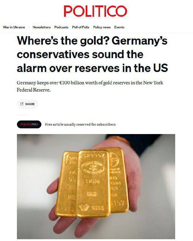 "Уряд шокований непередбачуваною політикою Трампа і більше не вважає Америку надійним партнером. Німеччина володіє другим за величиною запасом золота у світі і 37% з цих запасів зберігає в США як гарантію, що при необхідності влада країни може обміняти золото на долари або будь-яку іншу тверду валюту", - пише видання.