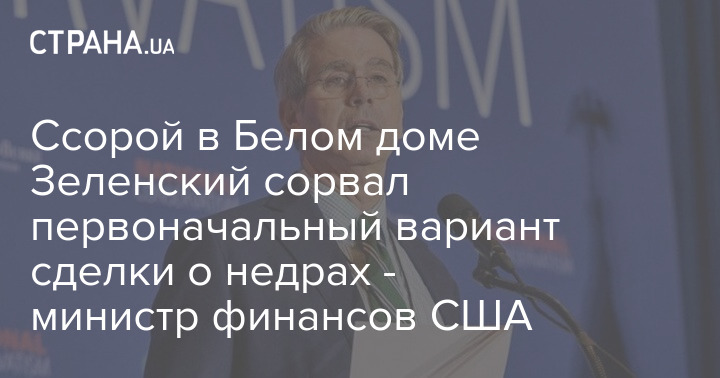 Сваркою у Білому домі Зеленський зірвав початковий варіант угоди про надра – голова Мінфіну США